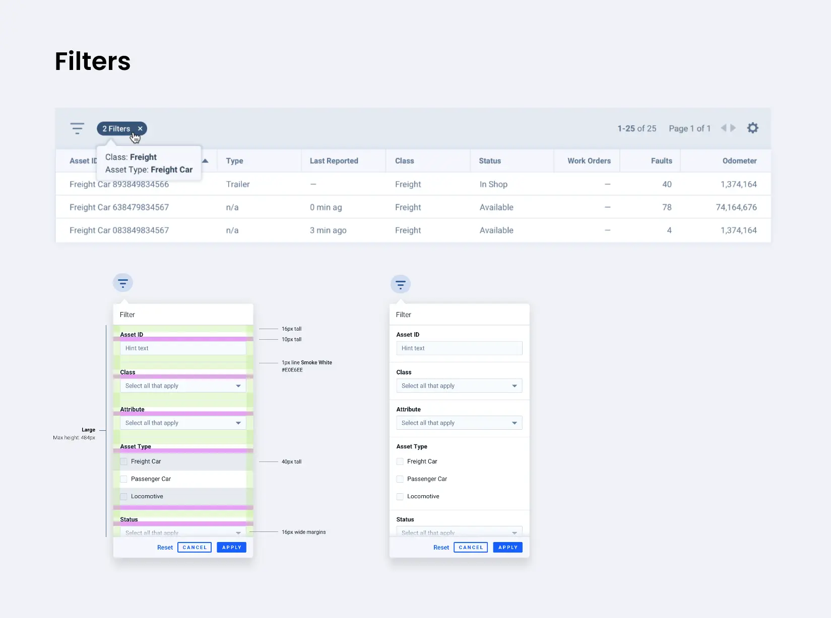These examples show the components that shaped everyday product workflows. What you see here is the design side of the system: the visual patterns, states, spacing rules, and interaction cues that teams reused across products. The technical specifications and coded guidance were documented separately in the system’s documentation site.
