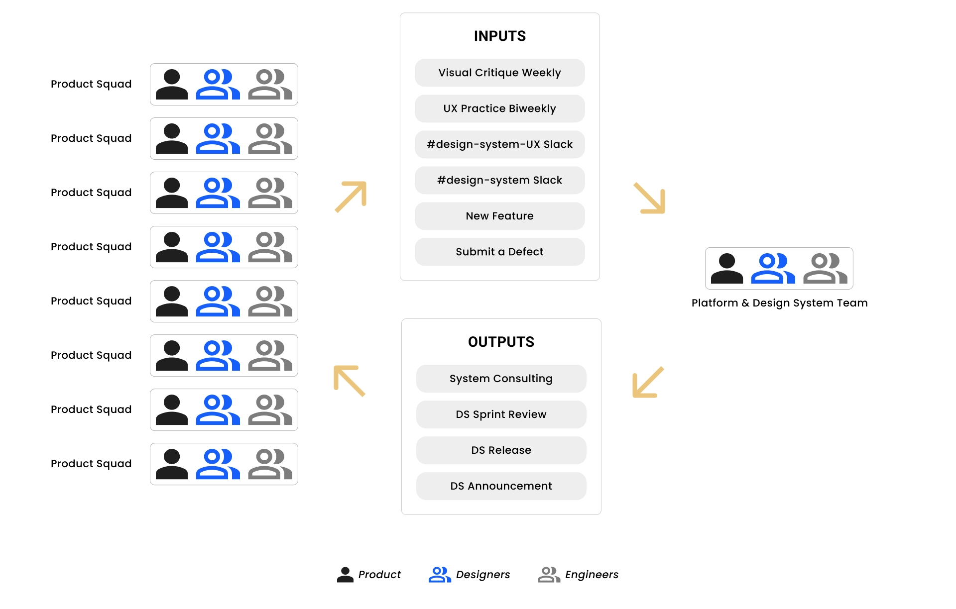 The system needed shared ownership. A platform team managed the core library, while product designers and engineers contributed insights from real usage. This created a feedback loop where platform work supported products, and product work informed the system.