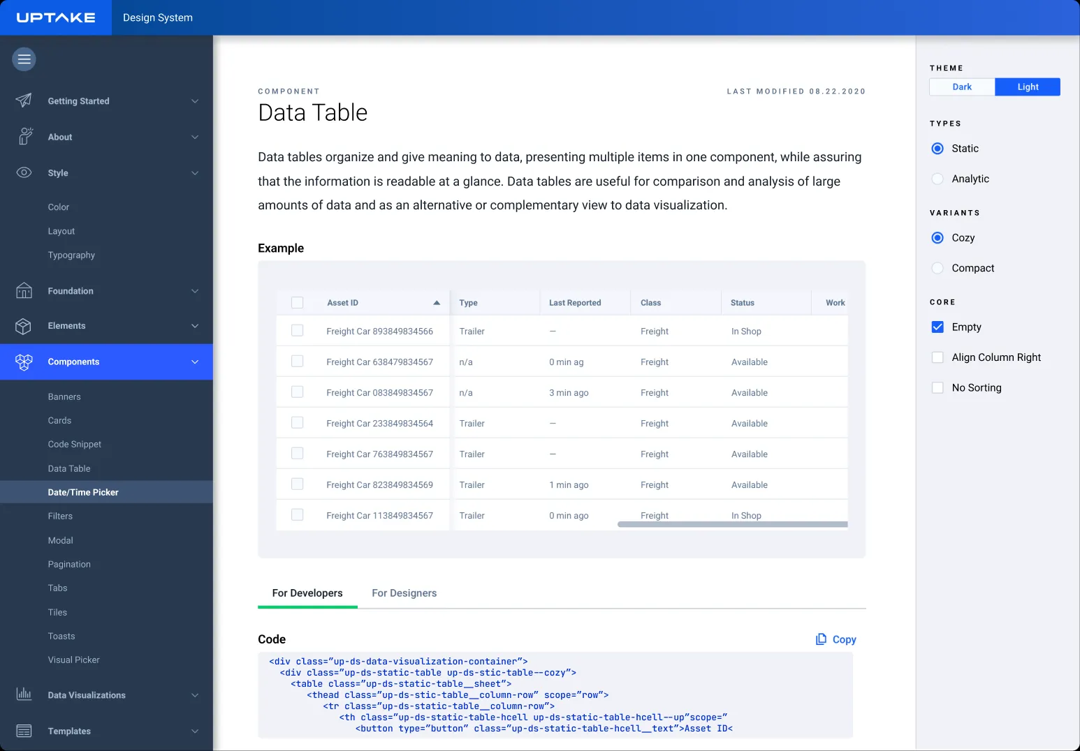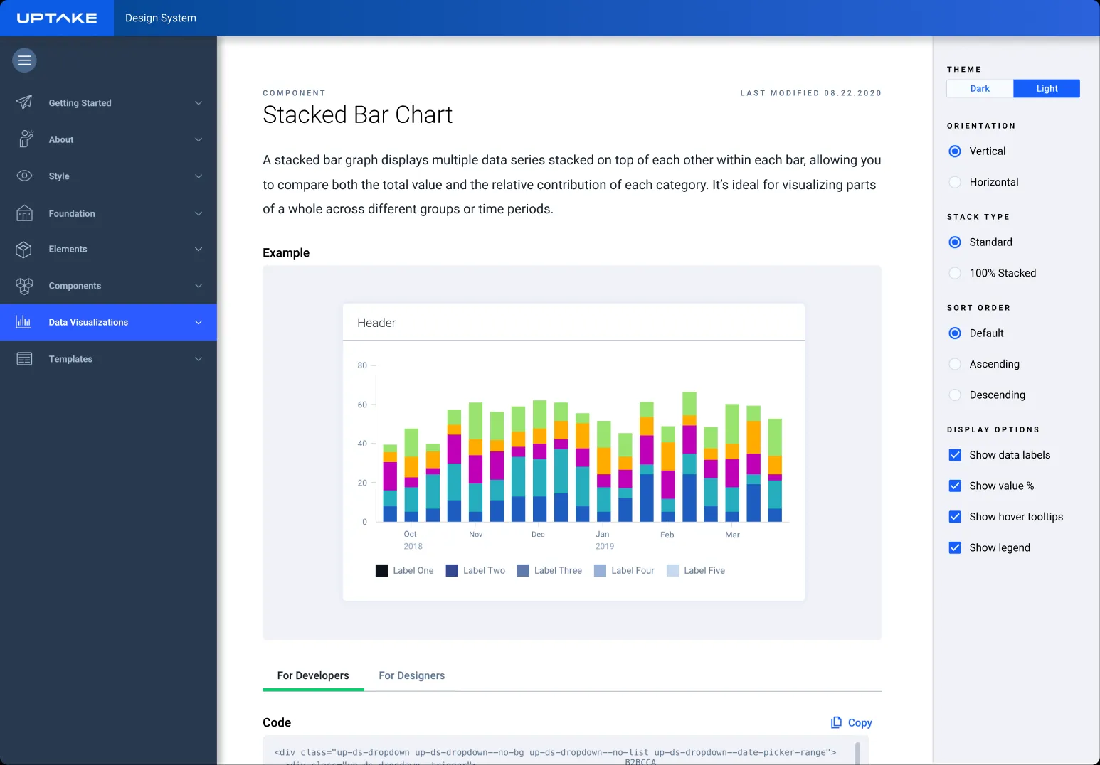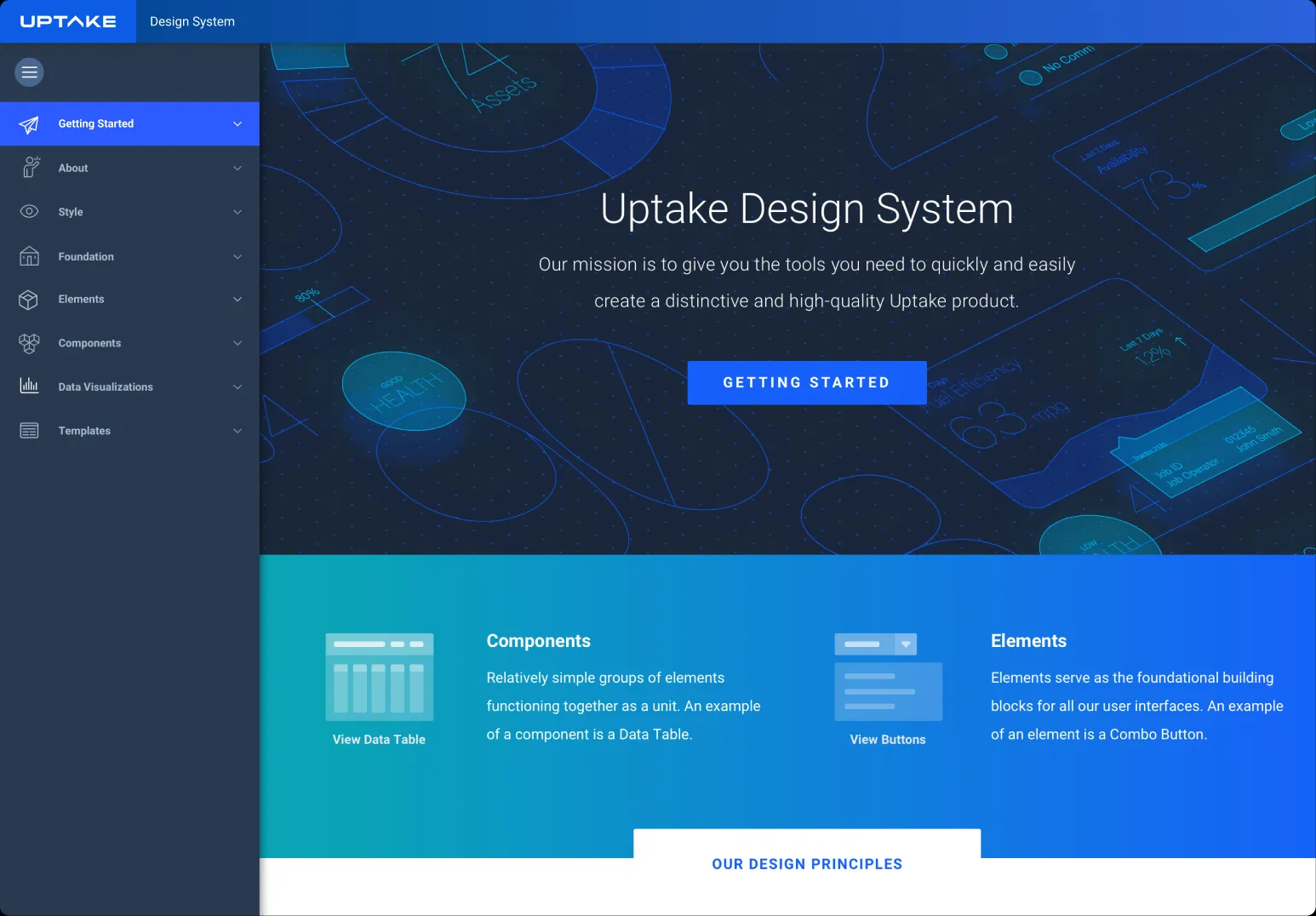 Uptake had multiple teams shipping products with different visual styles and separate UI patterns. The lack of a shared system slowed delivery and made the experience inconsistent across platforms. I helped build a design system that unified the visual language, created reusable components, and gave designers and engineers a single place to work from. The result was a system that improved speed, clarity, and consistency across more than ten product teams.